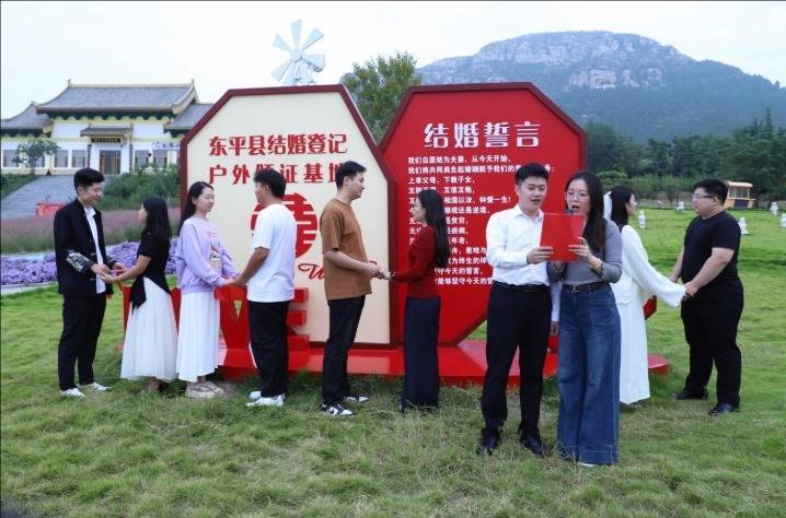 “新人选择在国庆节结婚领证,在举国同庆的热闹喜庆中步入婚姻殿堂,让领证更增添了庄重感。”东平县民政局婚姻登记处主任杨梅介绍,婚俗改革与儿童关爱相融合的主题活动,让领证更具纪念意义。