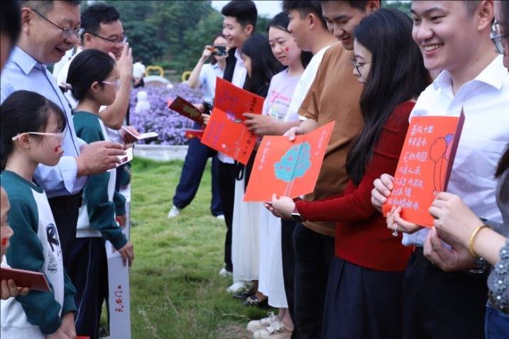 在白佛山·喜缘婚姻登记巡回点,领证新人与困境儿童开展温馨互动。孩子们化身“幸福引导员”,为新人送上小国旗及爱心脸贴,并绘制满载爱意的贺卡,共同表达对祖国的深情祝福,为婚姻的起点注入温暖力量。心意互换环节,困境儿童向新人送上亲手制作的贺卡,新人则回赠孩子们寓意一起搭建美好未来的积木玩具,一场双向奔赴的温暖互动让爱与善意在此刻完成循环。在婚姻家庭辅导员的引导下,新人还与孩子们共同参与辅导和互动游戏,引导孩子热爱祖国,感受家庭的温暖和社会的关怀。